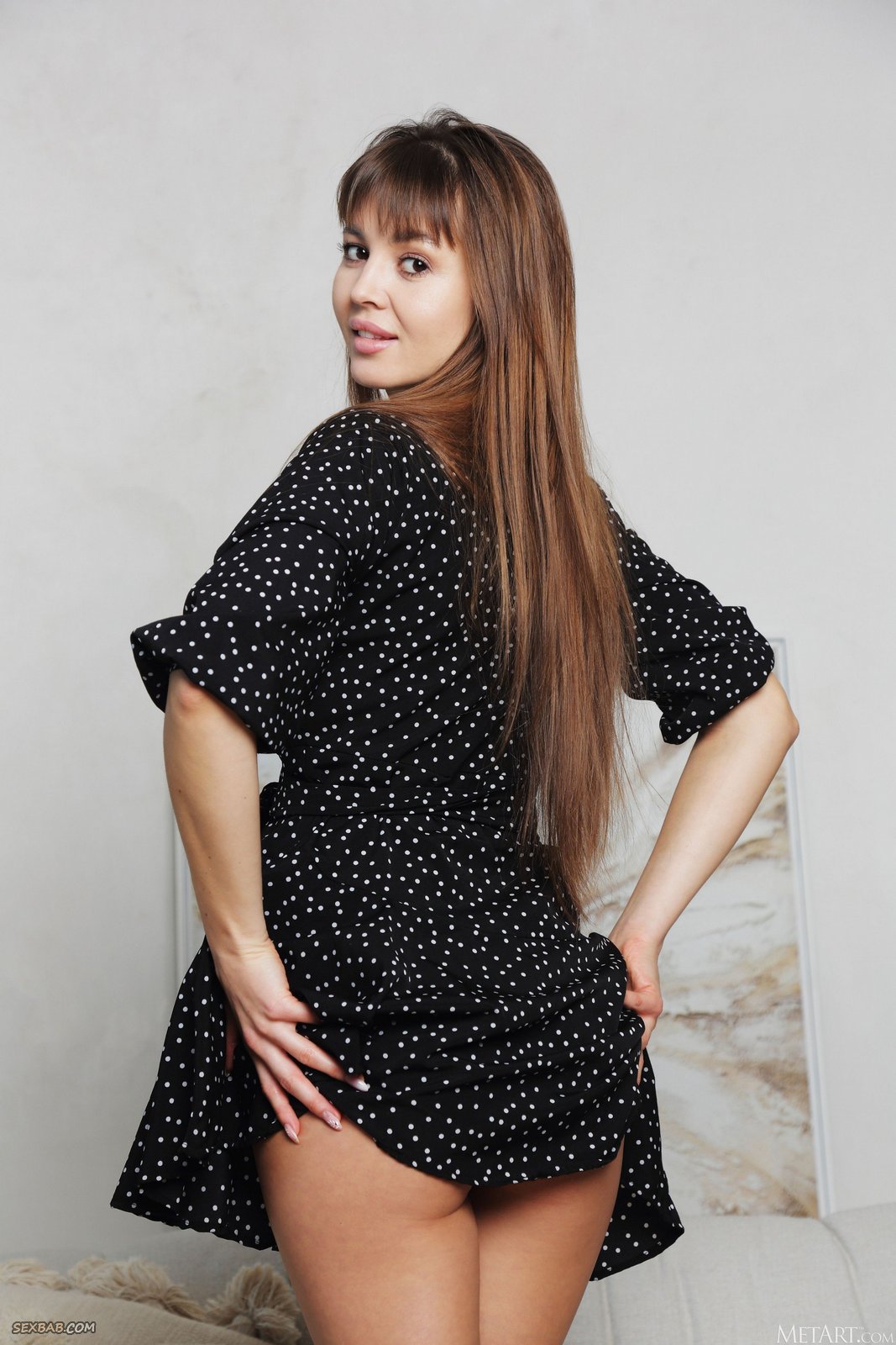 Описание: Соблазнительно медленно избавившись от короткого платья, развратная дамочка выставила на всеобщее обозрение свои натуральные мягкие титьки и вовсю светит на камеру своей бритой розовой киской, страстно извиваясь всем телом на диване в разных позах и крупным планом выпячивая вперед голую задницу с манящими дырками между ног.