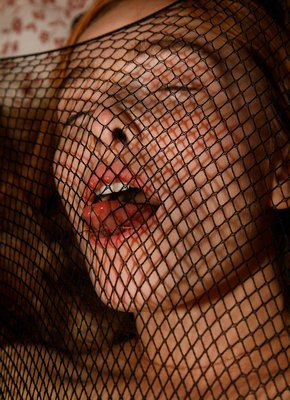 Описание: Развратная рыжая девица в прозрачном сетчатом наряде соблазнительно изгибается всем телом в разных позах, лежа в большой кровати. Сексуальная рыжуха с маленькими титьками игриво светит через большую дырку в промежности своей голой волосатой писькой с рыжим пушком.