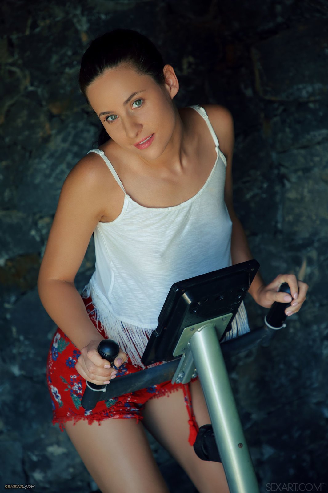 Описание: Чтобы поддерживать себя в форме, молодая брюнетка активно занимается на спортивном тренажере, а затем уставшая медленно раздевается до гола. Расслабленно устроившись на стуле, горячая вспотевшая девица раздвигает стройные ножки и крупным планом показывает свою голую гладкую киску с сочными половыми губками.