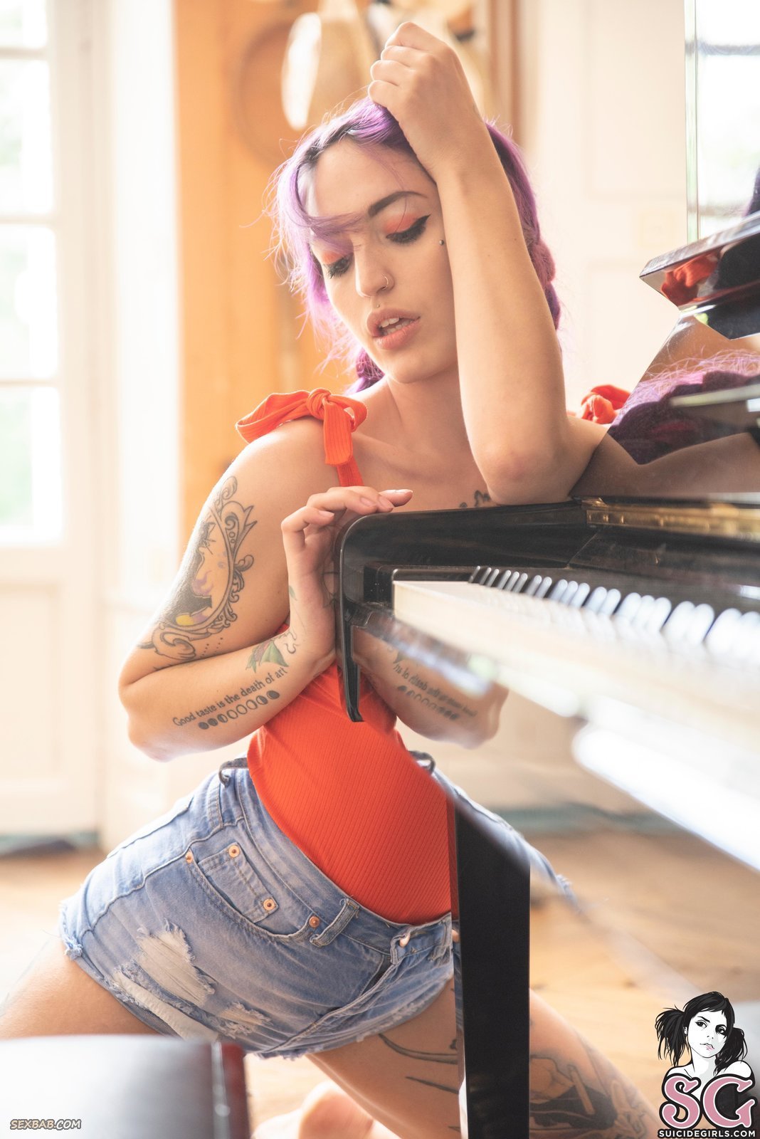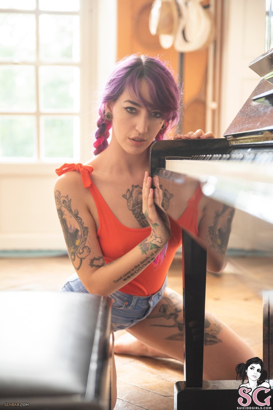 Описание: Устроившись дома у пианино, разноцветная развратная телка с татуировками медленно и соблазнительно стягивает с себя все свои шмотки, оголяя свое худое тело с маленькими титьками. Горячая девка завлекательно хвастается своим новым пирсингом - маленькими сережками в своих острых розовых сосках.