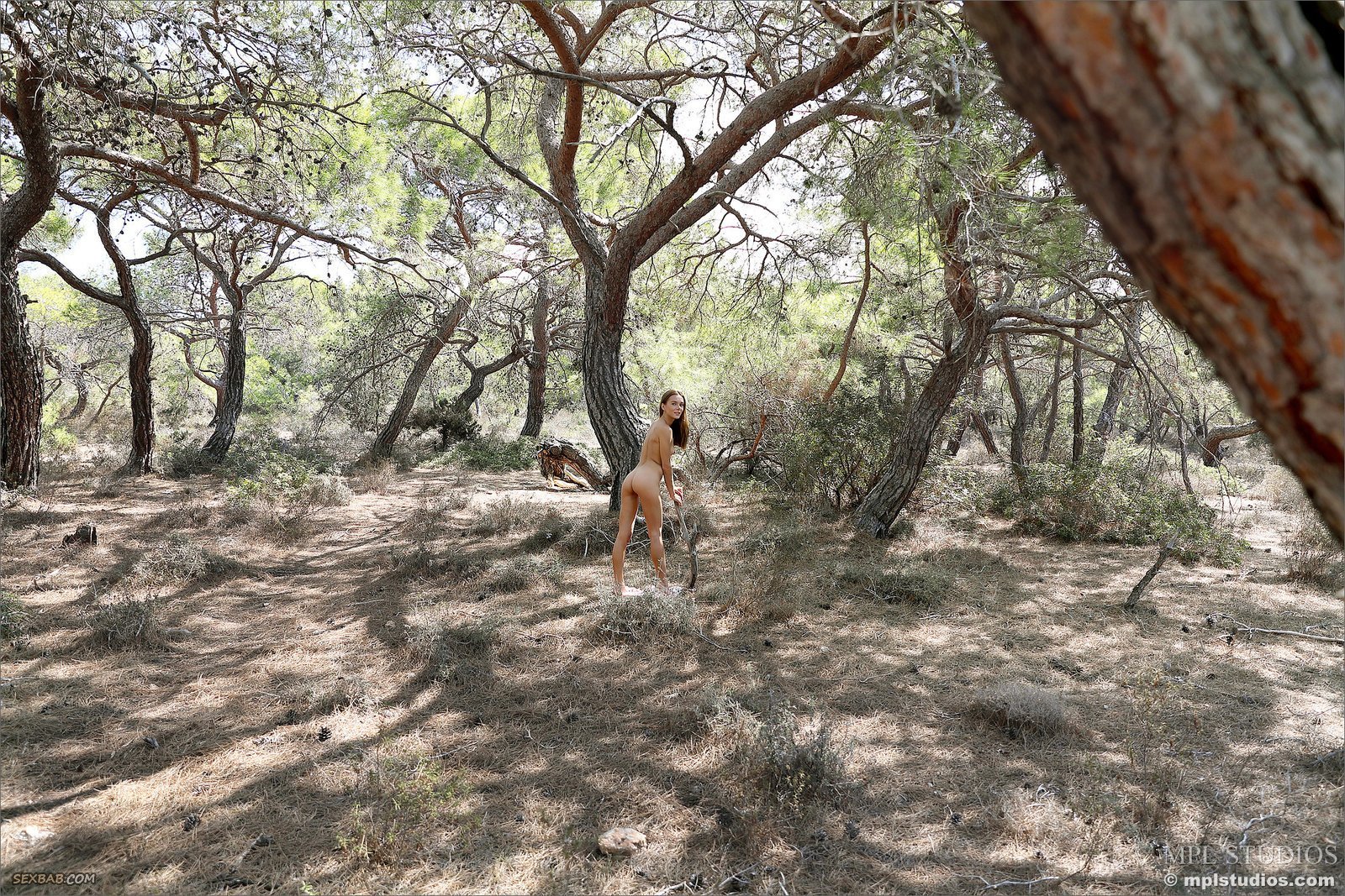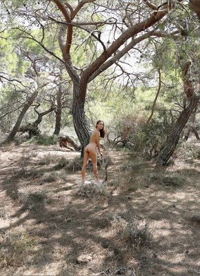 Описание: Отыскав уединённое местечко глубоко в лесу на природе, стройная и совершенно голая девушка с красивым лицом и голубыми глазами приступает к эротической фото съёмке. Соблазнительно позируя для фотографа, милая красавица с маленькой грудью, хвасталась своей бритой писькой с татуировками у лобка и упругой попкой.