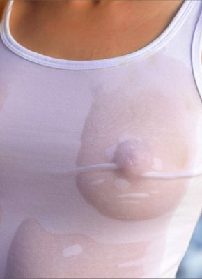 Описание: Обаятельная длинноволосая девушка в мокрой белой майке без трусиков эротично позирует у моря и поглаживая себя руками ощущает удовольствие. В процессе сексуальная стройняшка устраивается на камне и задирая остатки одежды демонстрирует маленькие сиськи, а раздвигая промежность показывает бритую письку.