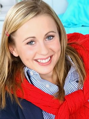 Красотка Britney Amber на мягком розовом диванчике