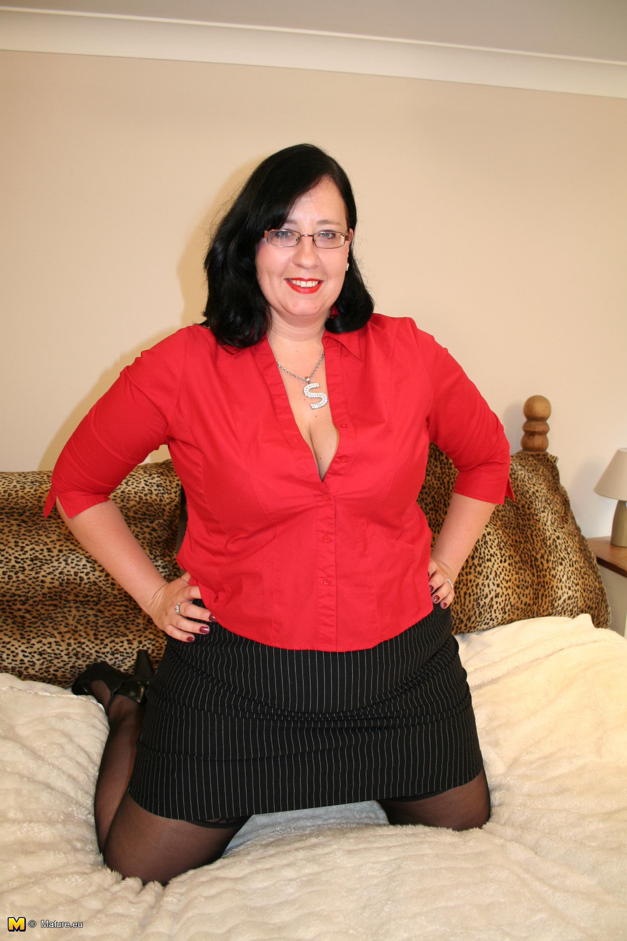 Зрелая мамочка завлекает раздвинутыми бедрами